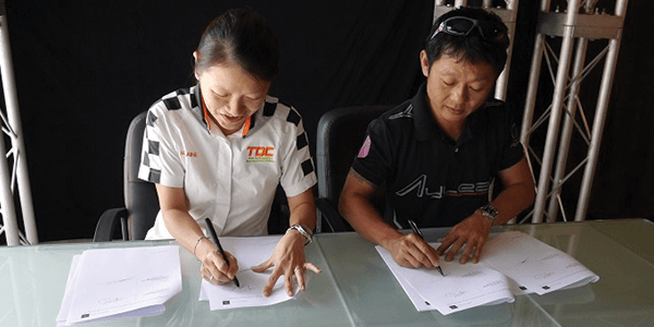 Adelaine Foo, CEO of TOC Automotive College and Zen Low, founder of Aylezo Competizione joining forces to form TOC-Aylezo Race Academy